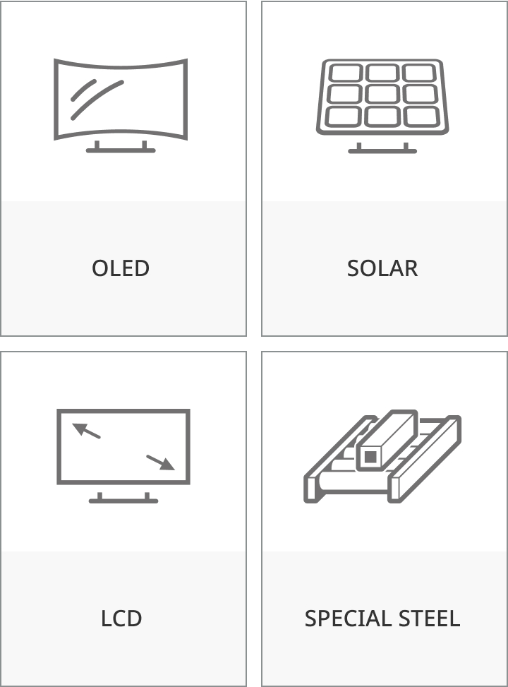 | Ultrasonic non-contact dry cleaning machine | A single-face dry cleaner that cleans 0.3mm or thicker panels by using ultrasonic air without touching the panels |